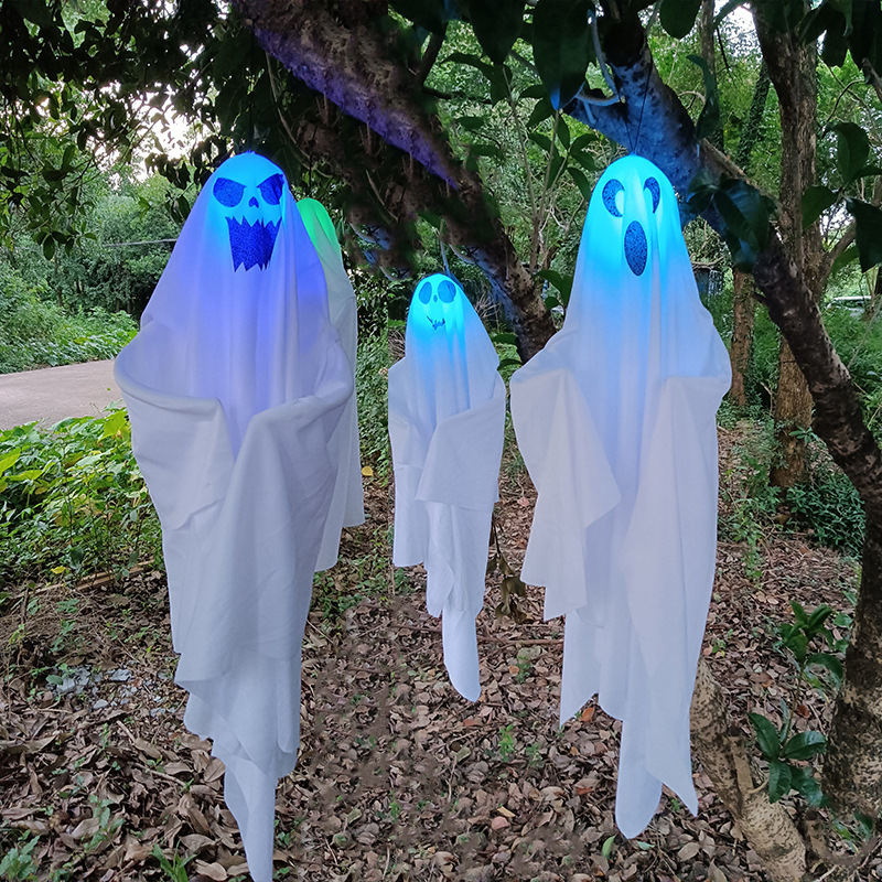 Accueil Décoration Nouveau pendentif fantôme blanc d’Halloween à trois couleurs décolorées